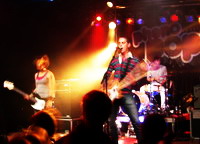 Dann wurde es jedoch schnell Zeit sich in den kleinen Burghof mit den hohen Festungsmauern zu begeben, der dann auch wirklich gut gefüllt war. Dort wurde nämlich schon die Bühne von den Thermals geentert, die mich vor gerade mal einer Woche mit ihrer furiosen Show auf dem Melt Festival nachts um zwei im Zelt so dermaßen begeistert hatten, dass ich mich jetzt noch mal vergewissern musste nicht geträumt zu haben. Dies war anscheinend nicht der Fall, denn die Szenen glichen sich von der ersten Sekunde. Hutch Harris, Kathy Forster und Lorin Coleman schlurften zunächst langsam auf die Bühne, um dann im ersten Song förmlich zu explodieren. Diesmal gab es zwar No Trivia zum Anfang, während auf dem Melt der bessere Opener Here’s Your Future gewählt worden war, doch trotzdem hatte die Band aus Portland, Oregon auch hier das Publikum sofort in der Hand. Was dann folgte war einstündiges Geknüppel durch alle drei Platten, von dem sich so manche Punkband eine Scheibe abschneiden könnte.